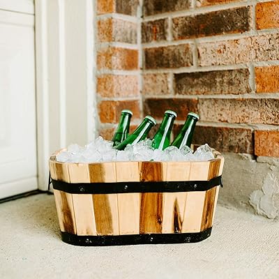 This window box planter provides your plants with a healthy environment. Made of stunning Acacia wood characterized by distinct natural markings - the Wood is treated with natural oil which will age The barrel to a golden brown. 26x165 Cedar Half Whiskey Barrel Planter Constructed Of 100 Kiln Dried Cedar With A Rustic Burnt Finish Outfitted With Galvanized Black Banding Secured With Screws Barrel Is Pre-Drilled For Drainage Light Weight and Organic Gardening Friendly No Chemicals Applied Perfect For Vegetable Gardening and Other Large Capacity Planting Jobs.